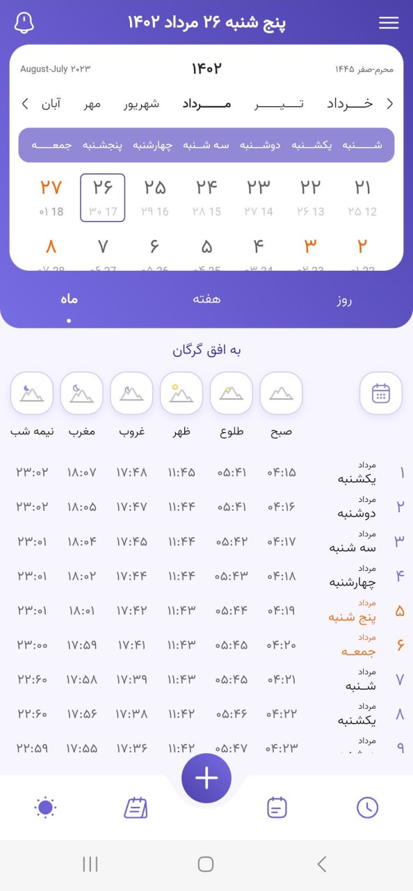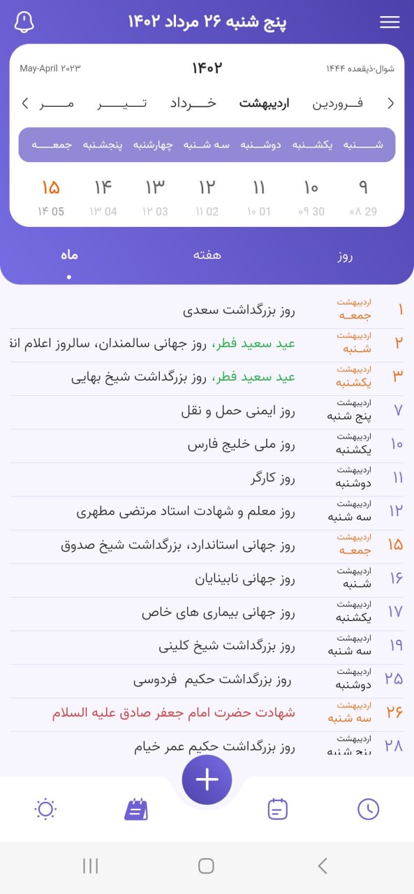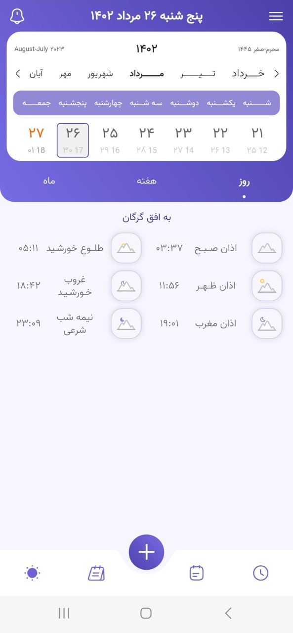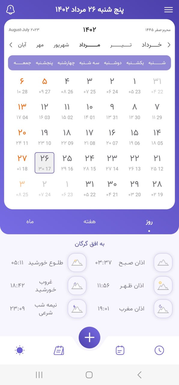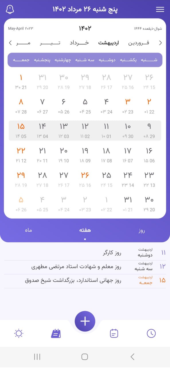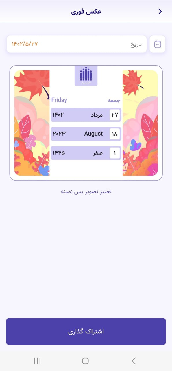 اپلیکیشن تقویم یک برنامه است که بر روی سیستم های هوشمند مانند تلفن همراه، رایانه، ساعت هوشمند و... نصب شده و به آسانی در دسترس فرد قرار می گیرد. اپلیکیشن تقویم علاوه بر نمایش تاریخ امروز، مناسبت و اوقات شرعی امکانات دیگری نیز ارائه می دهد که از مهم ترین آنها به موارد زیر میتوانیم اشاره کنیم: